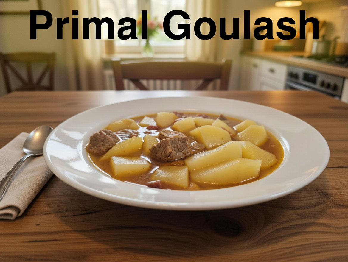This rustic, paleo‑friendly goulash is my version of a beloved comfort food from my Slovak childhood - a dish that simmered through long winters, filled the house with warmth, and brought everyone to the table. Traditional Slovak and Central European goulash often relies on flour or roux to thicken the broth, but this version keeps things naturally hearty without wheat, letting the flavours of beef, paprika, caraway, and caramelized onions shine through. It’s simple, nourishing, and rooted in the kind of cooking our ancestors would recognize: whole ingredients, slow simmering, and deep, honest flavour.